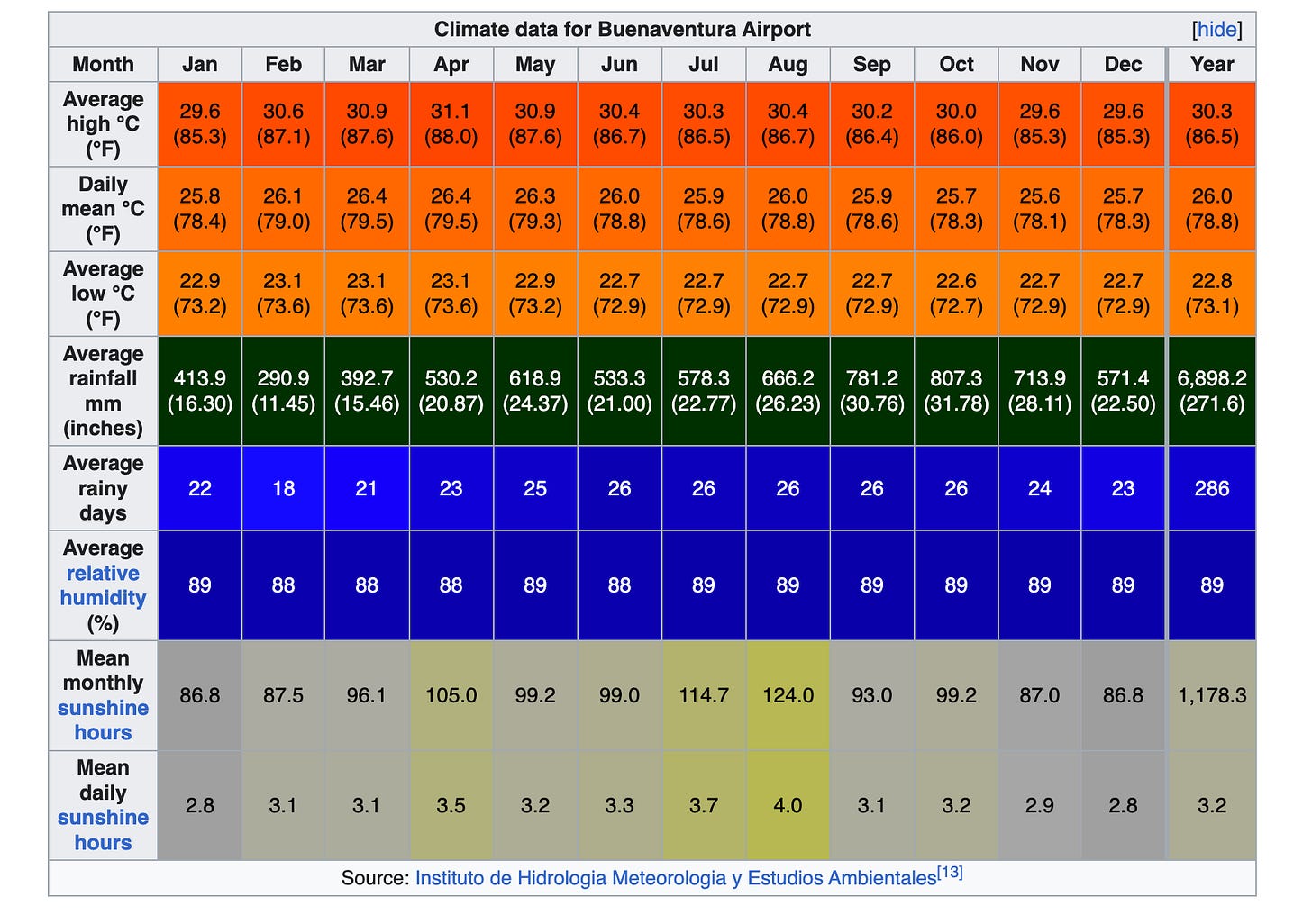 Hot, wet and humid. The Pacific coast of Colombia is literally one of the wettest regions on the planet and receives more precipitation than almost anywhere in the world, so pack a rain jacket and extra clothes.