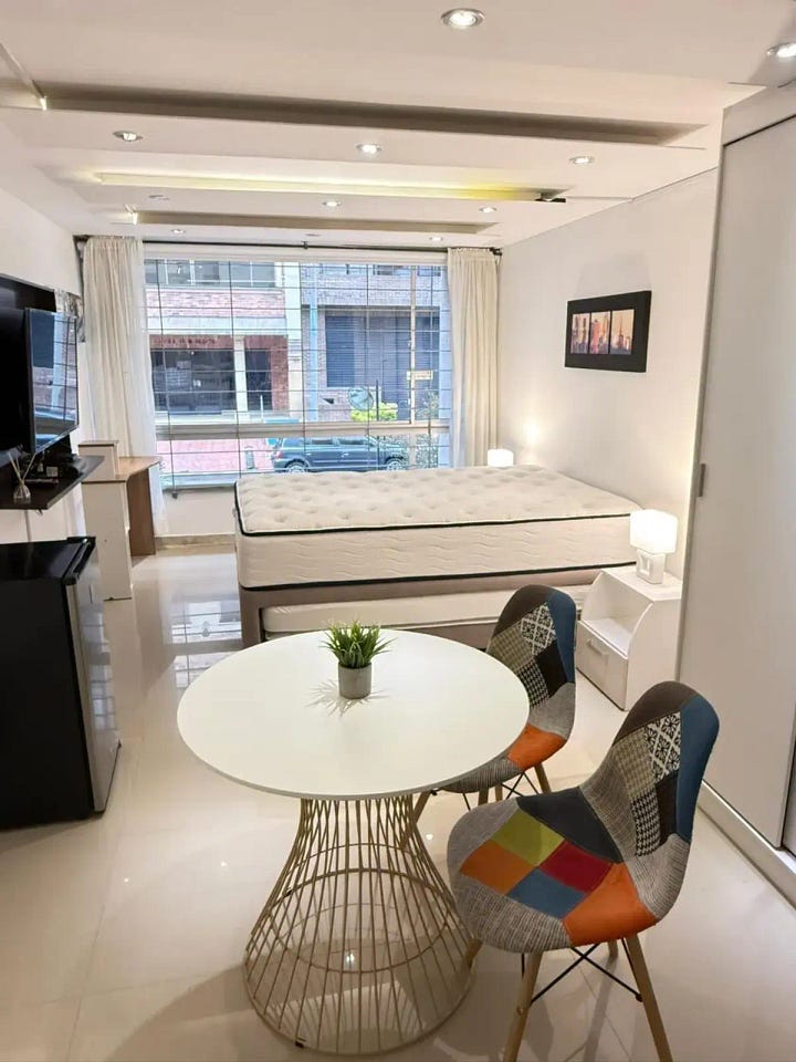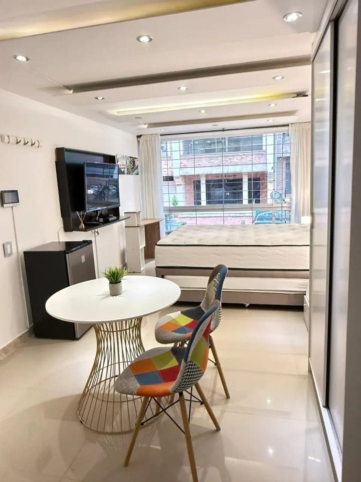 Small studio in El Virrey, the absolute “vortex zone” of where you want to be in Bogotá. Sits right between Parque Virrey proper and Zona T —the two most walkable, best-kept zones in the city. Parks, cafés, restaurants, insane nightlife — everything you need within 10 minutes on foot. Estrato 6, of course.