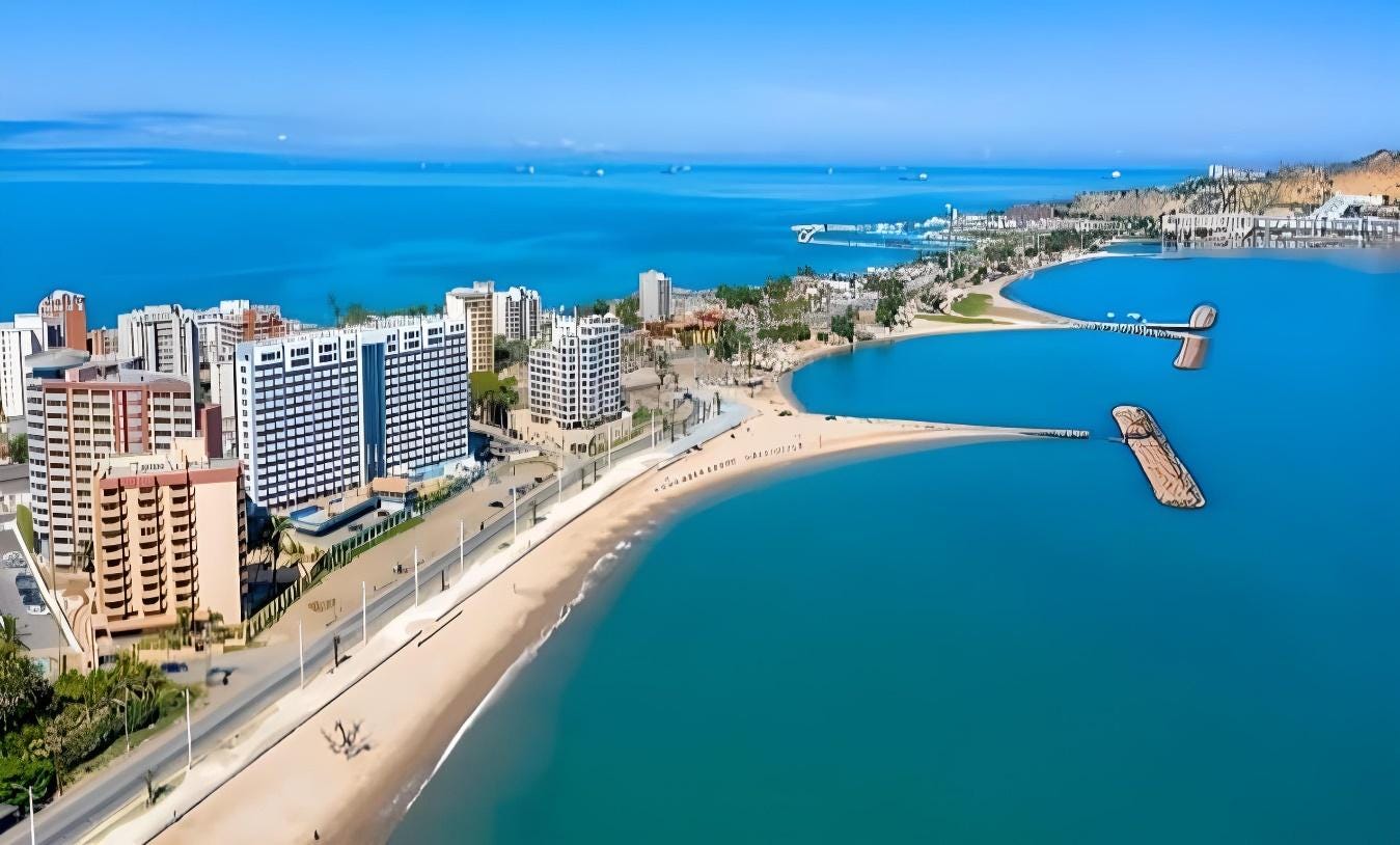 It is a small city surrounded by beaches and water canals, like Venice. The city is young, with an average age of only 31 years, and it was built on salt flats using artificial islands.