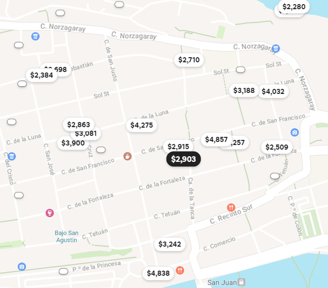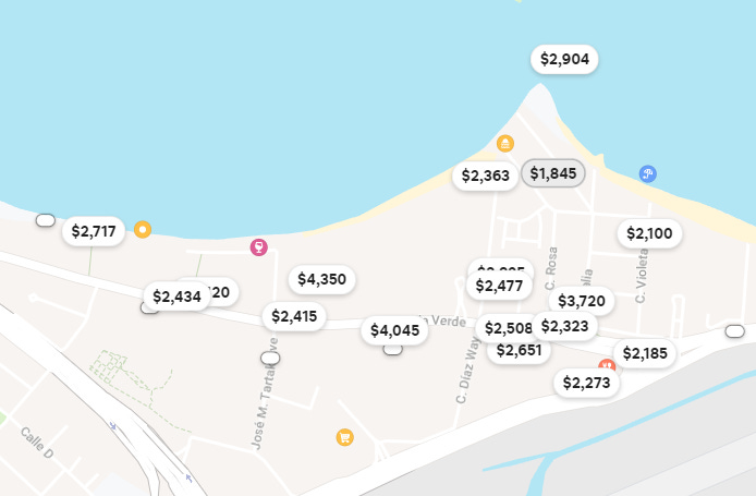 If you're looking closely at the maps, you can see that Airbnbs really close to the water are rare. In fact, the Isla Verde map shows the only four that are even currently available!